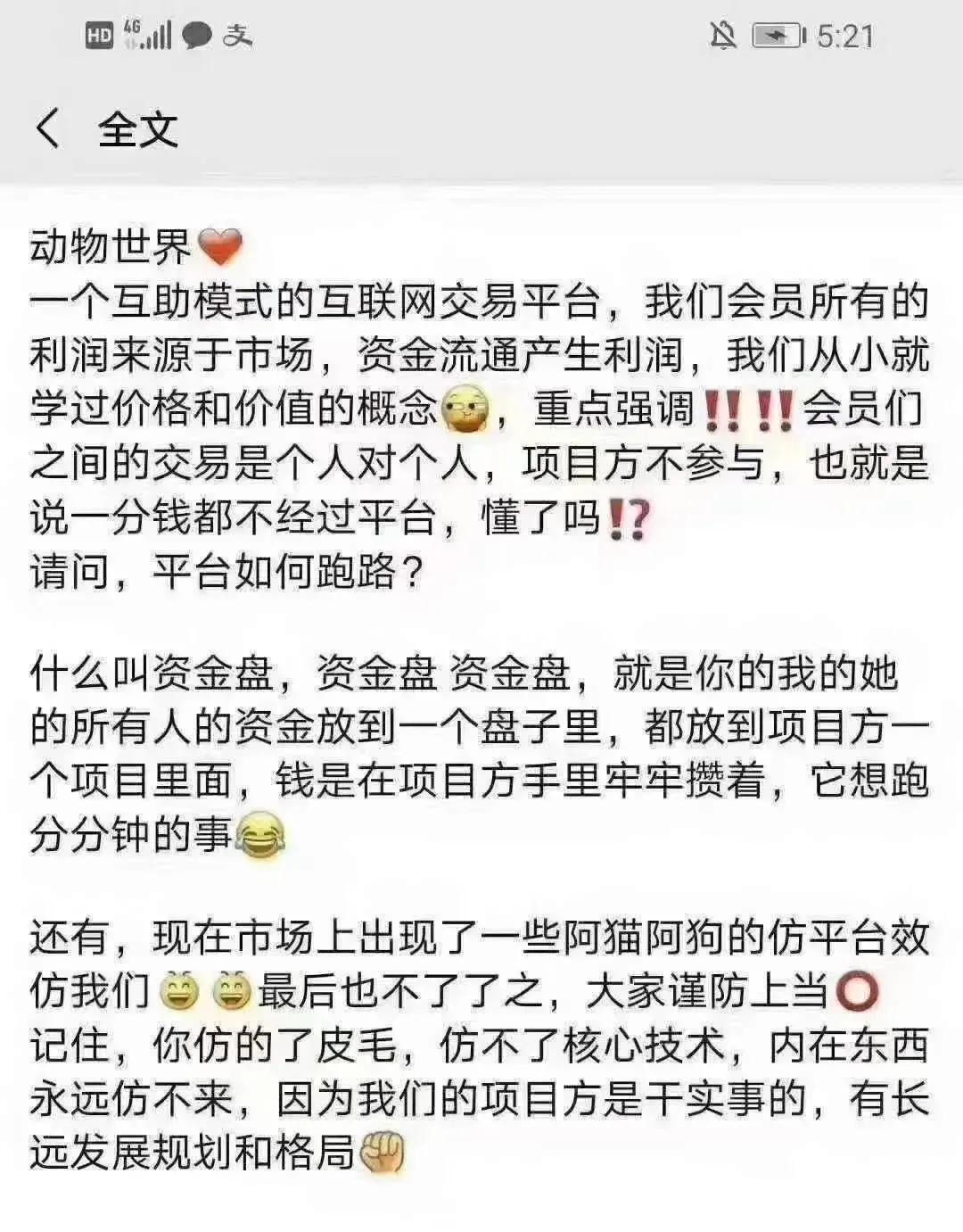 《動物世界》這個APP,是一個打着動物養成名義的搶單互助類資金盤。