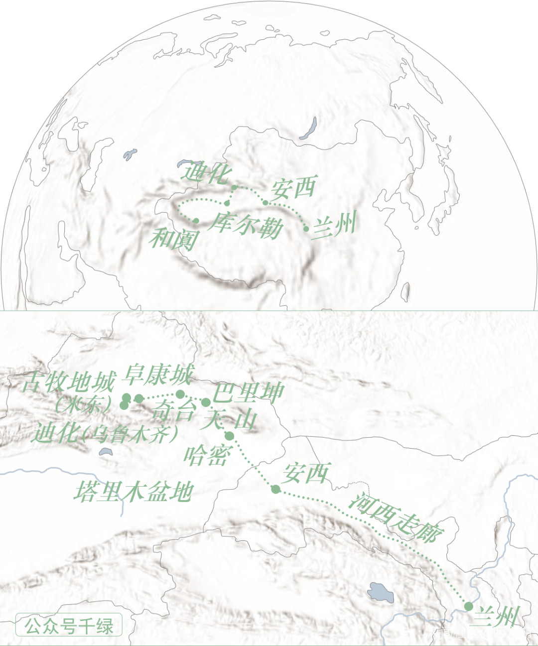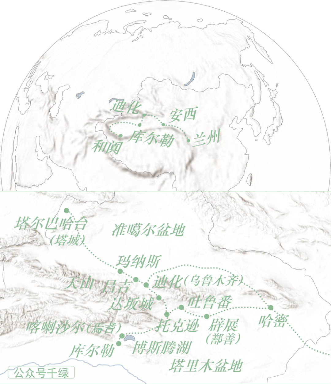 大尾巴熊配圖ps:自駕沿左宗棠收復新疆路線從蘭州出發向西北上連霍高速,穿過河西走廊到烏魯木齊,南下土和高速經庫爾勒、喀什到和田。耗時約46h8min。路線數據來自GoogleMaps