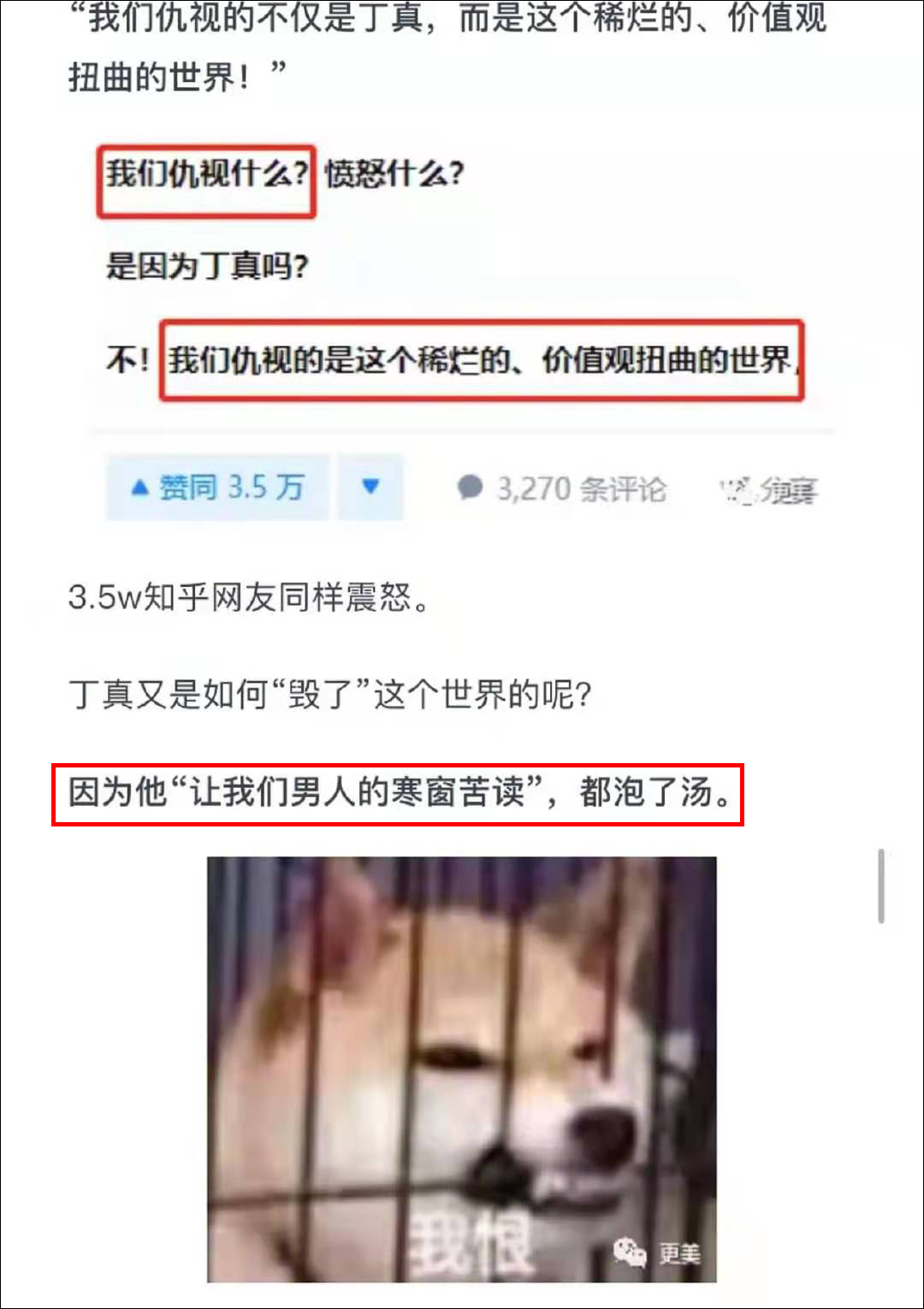 網上部分男性對於丁真的走紅十分不滿甚至仇視,稱“十年寒窗苦讀不如一張投胎臉”,“我們仇視的不僅是丁真,而是這個稀爛的、價值觀扭曲的世界。”