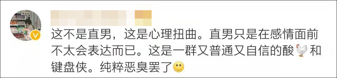 還有網友表示,不要給這些人貼直男標籤,他們只是一羣“心理扭曲”、“又普通又自信”的鍵盤俠。