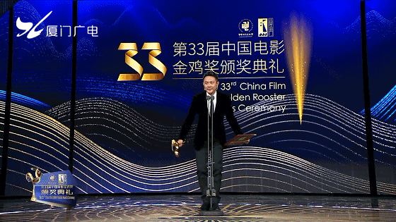 “瓦藍藍的天空飛金雞,我在廈門眺望北京,側耳聽評委的聲音,望眼欲穿把金雞獎領。”