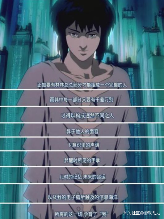 1995年押井守版《攻殼機動隊》中的哲思:我對自己的認知是由各式各樣的回憶構築成的,而現在這些記憶可以通過義體技術被輕易改寫,那麼我還是我嗎?