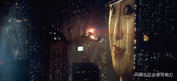 電影中夜色瀰漫的城市、遠處工業區時不時冒出的火光和遮住整棟樓的巨大廣告牌,不僅為當時的觀眾帶來了前所未有的震撼,更是為後世的賽博朋克視覺藝術風格奠定了基調。