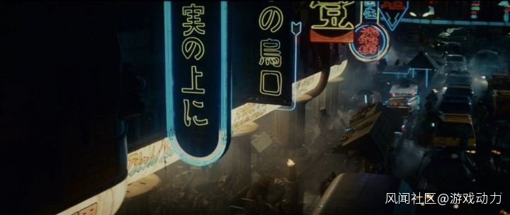 賽博世界隨處都可以見到亞洲文字和文化符號,主要還是亞洲給人的固有印象就是人口眾多,世界各地都是無處不在的亞洲人,亞洲文化拓展到了世界的各個角落。以及其較低或古樸的生活方式,讓亞洲的符號成為賽博世界中底層人民的代表符號。