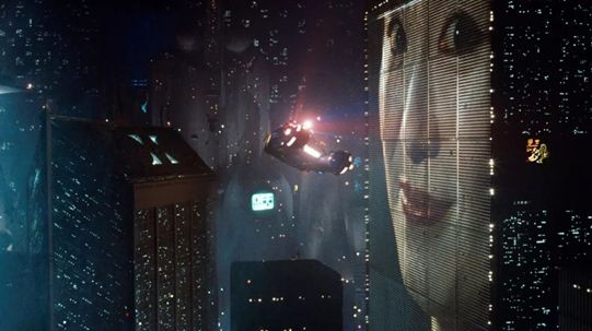 但到了1982年,狄克的小説被改編成電影時,故事的標題不僅被嫁接到了艾倫·E·諾斯的小説《銀翼殺手》(The Bladerunner)上,背景也從舊金山變成了洛杉磯,在場景上大量借鑑了東亞的元素。電影《銀翼殺手》的背景設計成了賽博朋克美學的另一發端,摩天大樓間令人感到不適的東亞面孔投影也成為了經典要素,被之後的作品所繼承。