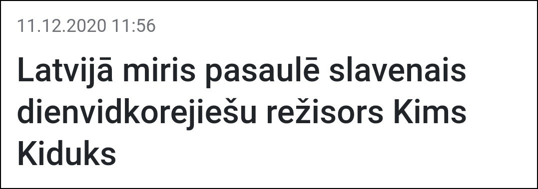 11日下午,Vitalijs獲悉,金基德當天早些時候在當地一家醫院中死亡,死因是新冠病毒感染併發症。
