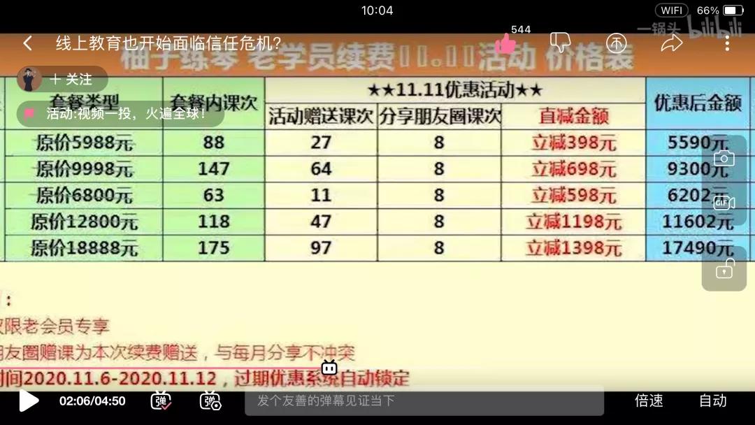 圖 / 柚子練琴雙十一的優惠信息(網友“一鍋頭”視頻截圖)