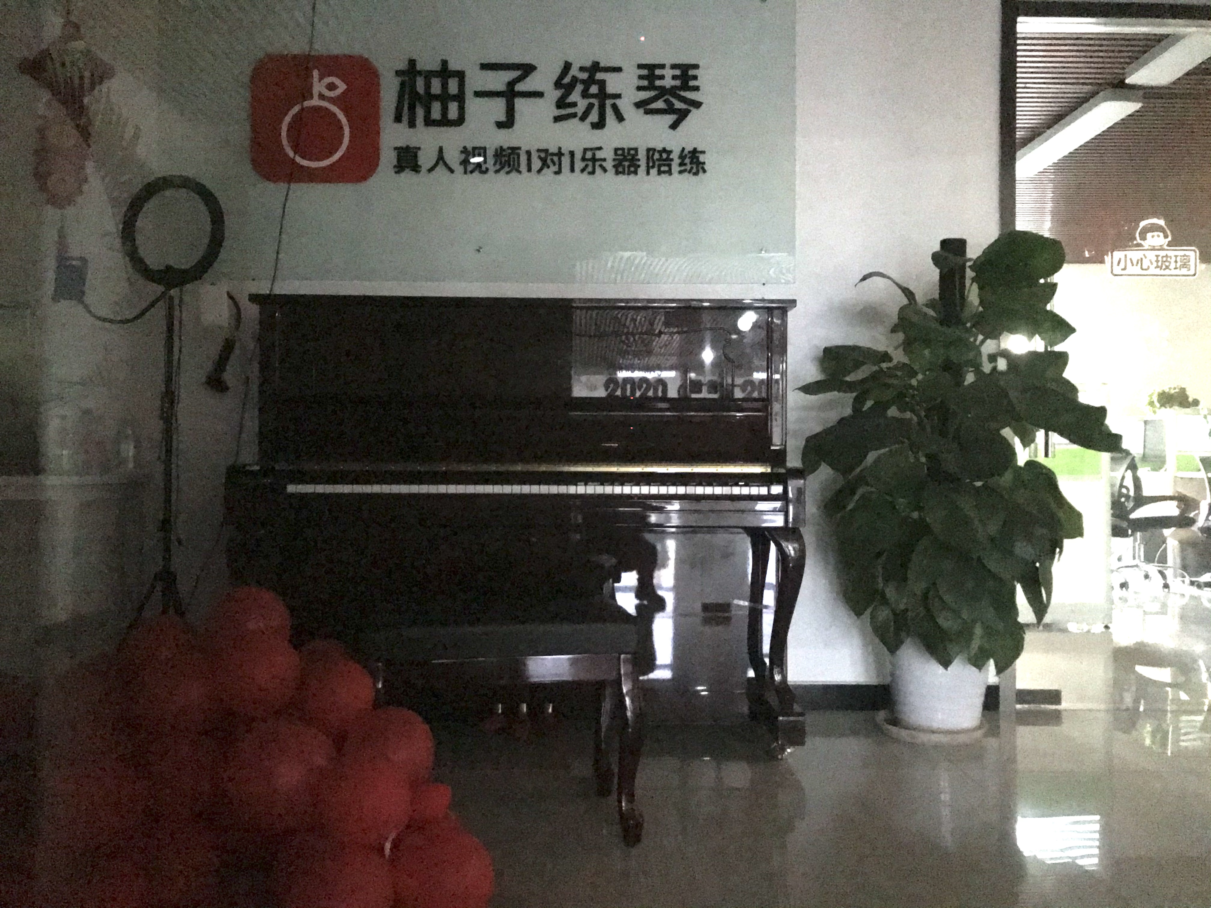 在一棟樓的五樓,柚子練琴大門緊鎖,透過玻璃門可以看到,門廳裏有一架鋼琴,地上散落着一些紅色氣球。