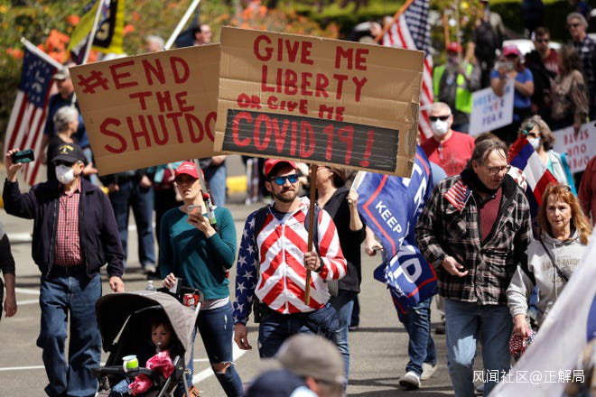 美國民眾對新冠疫情已經不單單是質疑了,他們還付諸行動——號召大家不戴口罩遊行。