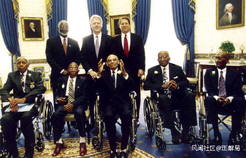 克林頓與塔斯基吉梅毒實驗受害者代表的合影