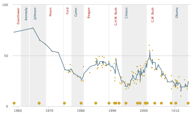 下面是歷年美國人對美國政府信任度:美國民眾對政府的信任度逐年降低。