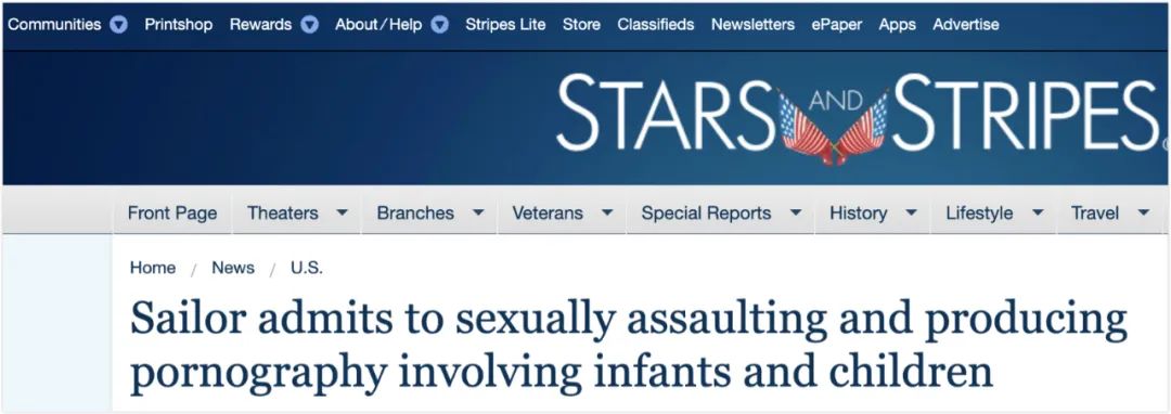 據美國《星條旗報》網站報道,當地時間12月7日,海軍水手蘭德爾·蒂爾頓在紐黑文地方法院認罪,承認曾對幼童進行過性侵犯並製作受害者的色情圖片,他將面臨最高210年監禁。調查人員將此案稱為“對兒童性虐待最嚴重的案件之一”,其中兩名幼童在遭到侵犯時分別只有4個月和6個月大。