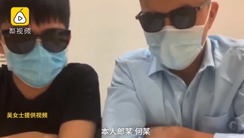 郎某和何某戲很足,一個扮演女業主,一個扮快遞員。