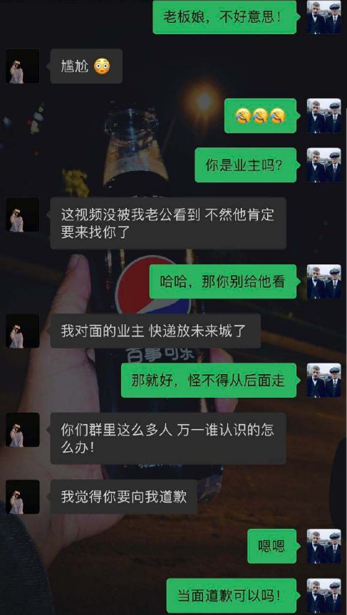 這段視頻也被他們充分利用,假裝成快遞員偷拍的這段視頻發給女業主,而女業主生氣,快遞員道歉。