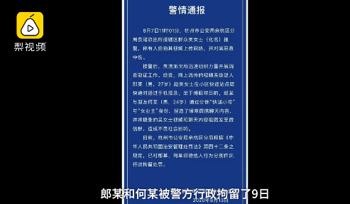 但隨意拿一個人的清白和名譽造謠,已經觸碰到了法律的底線,警方對郎某和何某處以行政拘留9日的處罰。