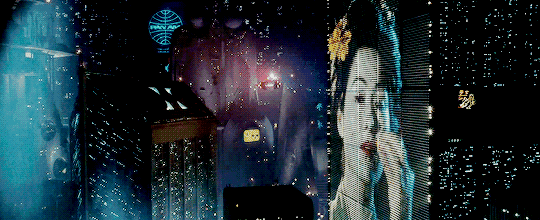 文學作品中的賽博格空間受大企業控制,充斥着違禁品。同期的電影則將文字描繪的塑料、霓虹燈、頭戴設備等搬上大銀幕:1985年《回到未來》、1986年的《霹靂五號》都具備賽博朋克的視覺要素。