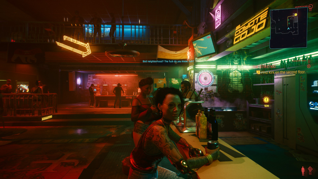 開篇任務結束後,玩家統一進入夜之城。相當接地氣的中文語音旁白,向玩家介紹了這座罪惡之都的基本情況:混沌、冷漠、硬核、反烏托邦。“餓死膽小的,撐死膽大的”、“英雄不看出身,就看您能不能踩出自己的道”就是夜之城的生存法則。