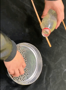 水偷偷地變化了位置,放眼瞧去,重心跑過了平衡點,生出一個向下的合力。瓶子翻着,跳着,打兩個滾,就到了下一層。瓶底是在上的,瓶蓋是向下的。