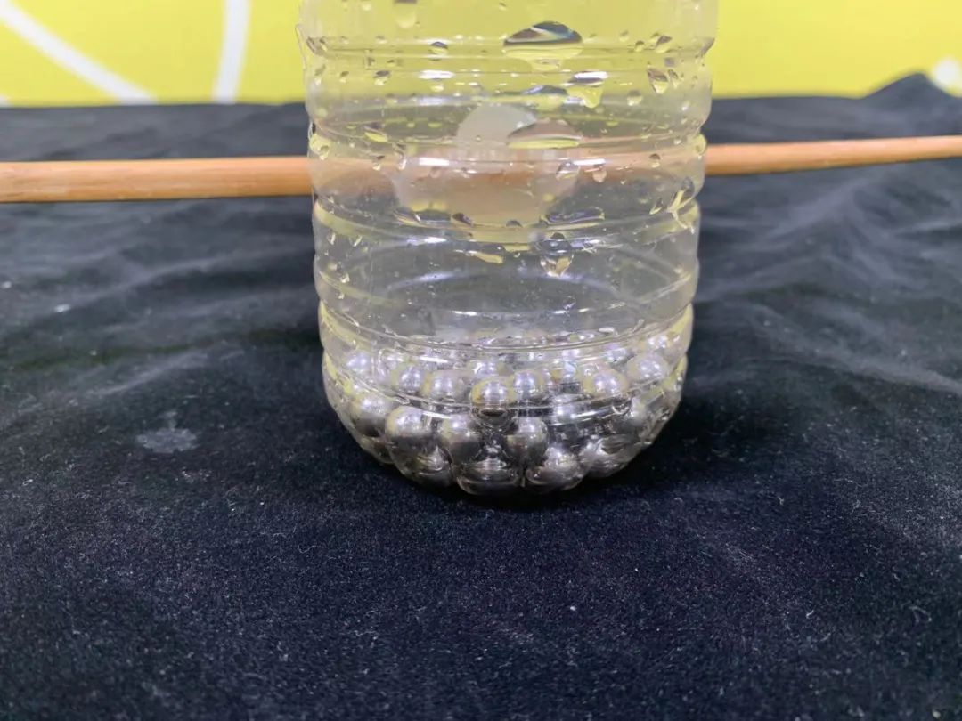 初始的時候杯子是平衡的,一切都是剛剛好的樣子。中二所的粉絲小朋友們盼望着,盼望着,門開了,小編的腳步近了。小編伸出了罪惡的手,於是,瓶子就像是剛睡醒的樣子,欣欣然開始動起來了。
