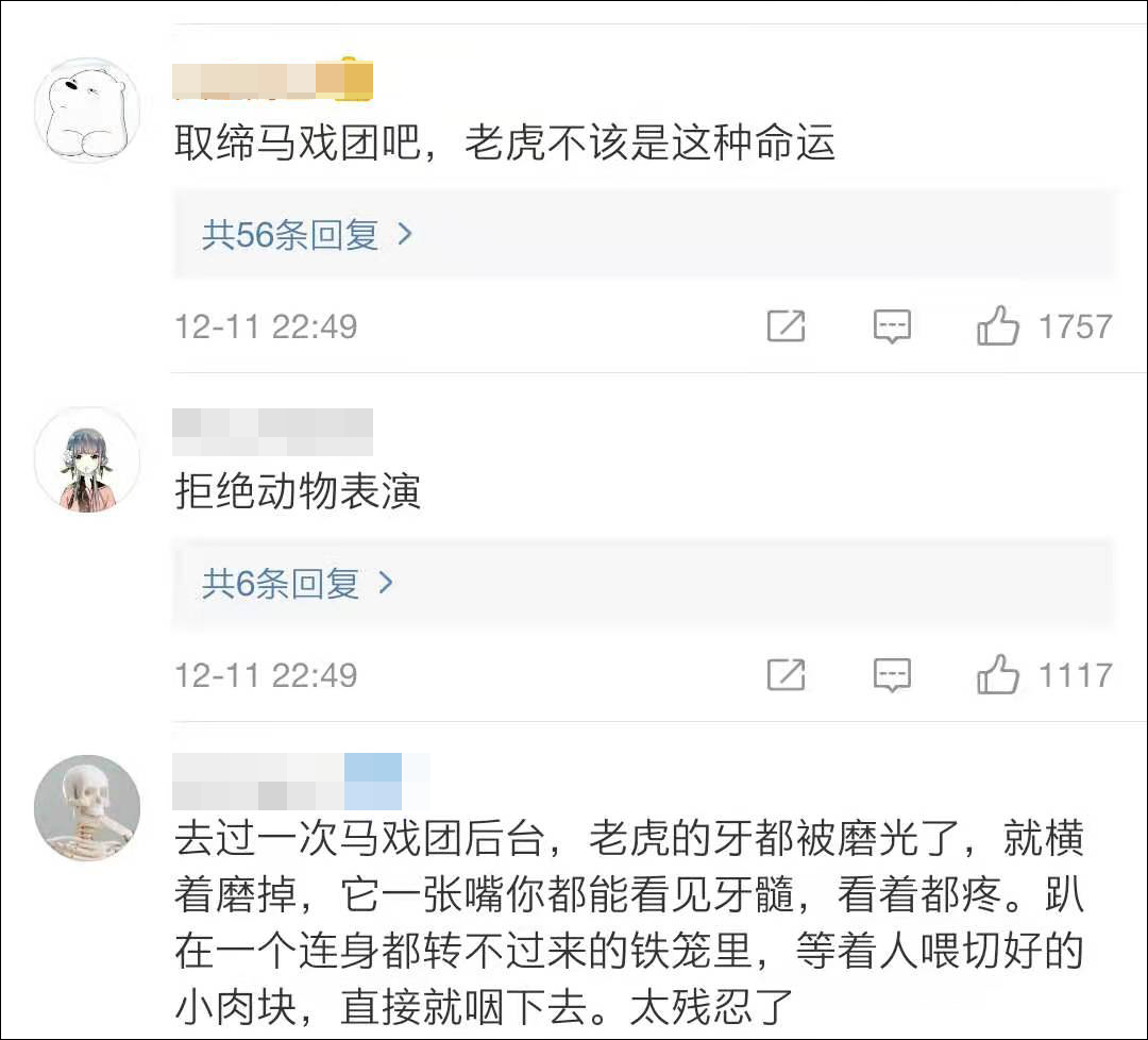 事件發生後,網上再度掀起了“禁止動物表演”,“取締馬戲團”的輿論浪潮。