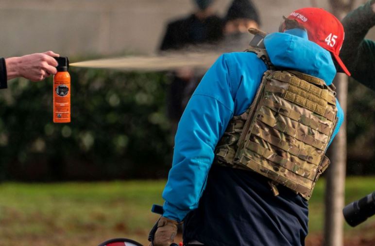 示威者被反示威者胡椒噴霧攻擊 轉引自ABC