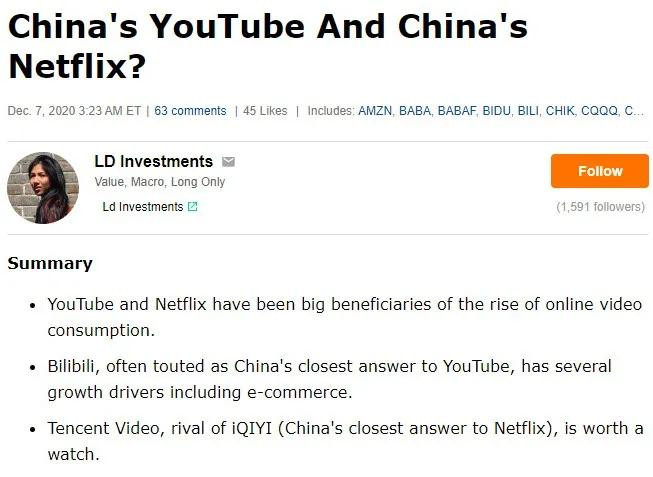 在這15份華爾街投行的研究報告中,絕大多數都認為B站是中國的YouTube。而這個定位與B站想去競爭的長視頻或中長視頻領域,有着較大的差異。