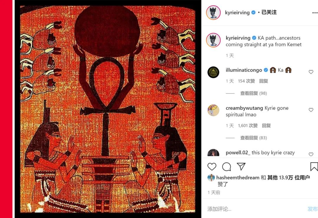 接下來,歐文的IG風格大變,經常會出現歷史、古代印第安人的戰鬥場面,有時候是一個印第安酋長的頭像,甚至是一頭黑豹,沒有任何文字説明。