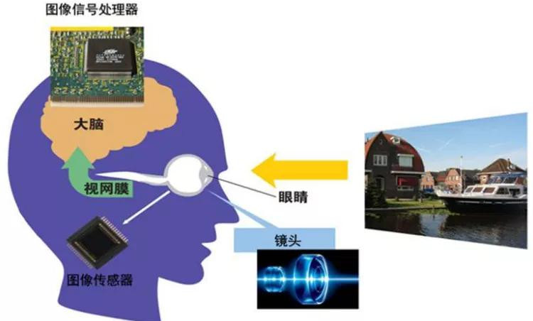 和生物視覺的實現方式一樣,圖像視覺的處理過程也基本按照這一過程實現,包括收集光源的鏡頭、將光信號轉化為電信號的圖像傳感器、對圖像電信號進行數字處理的ISP芯片以及現在能對圖像進行進行分析識別的當紅辣子雞的AI芯片。