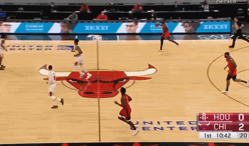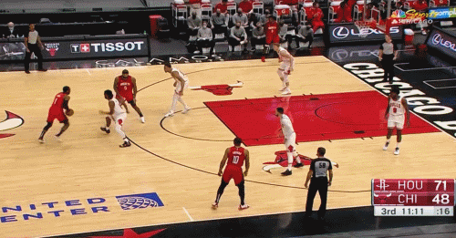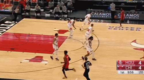 沃爾在三分線附近的跳投不像哈登那樣準,他的投籃位置到了5米以外,就跌落到40%以下,在他最後受傷那個賽季的32場球,三分命中率僅為30.2%。所以,沃爾更多會採取“早進攻”的方式,這時候即使投三分,效率也會提高。他在對公牛第二場,前兩個三分全中,但後4記全失。