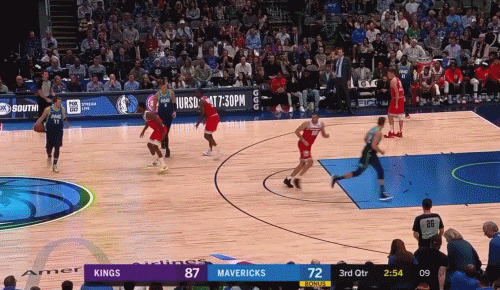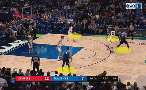 最後是關鍵時刻小牛的重要打法:讓後衞給核心後衞做擋拆。