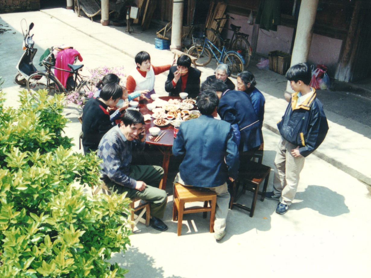 照片右側為我母親和王家嬸坐一起吃飯(2001.4.1)