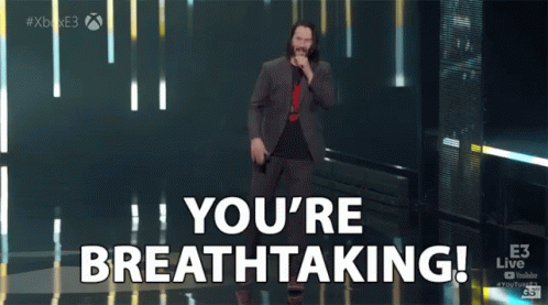 E3 2019展前發佈會上曾有一個小插曲,在基努剛剛登台,準備介紹《賽博朋克2077》有多麼breathtaking(驚人的、激動人心的)之時,台下突然傳來一個聲音:“You’re breathtaking”,他愣了極短一段時間,立馬回應道,你才“breathtaking”,在座的所有觀眾才“breathtaking”。