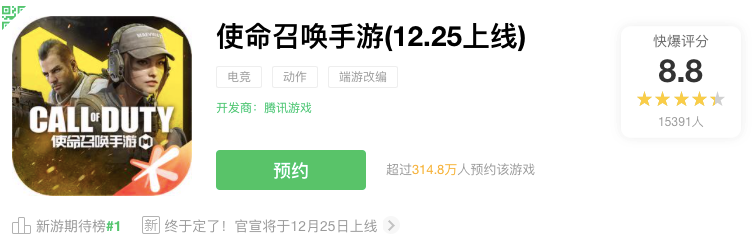 繼8月份獲取版號、11月份完成使命終測後,由動視IP授權騰訊天美自研精品《使命召喚手遊》於今日宣佈產品將於12月25日正式上線。這款主打3A級品質的FPS手遊能給市場帶來多少變數?隨着上線日期的臨近,答案即將揭曉。