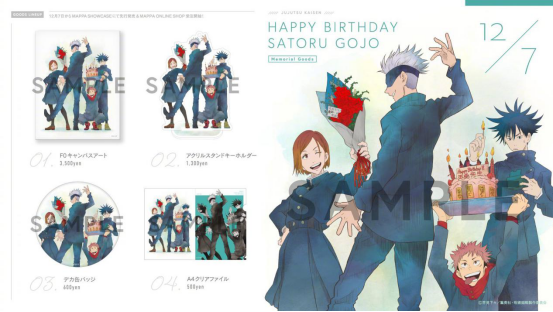 之前提到過,五條悟在《咒術回戰》中人氣一騎絕塵,集英社也深喑粉絲心理。五條悟12月7日的生日慶賀商品就有好幾種,角色經濟在這位新男神的身上體現地尤為明顯。