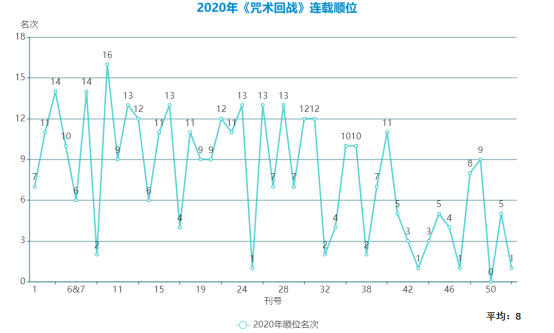 到2020年,《咒術回戰》的平均順位為8。