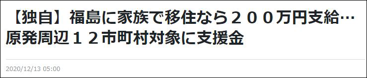 據日本《讀賣新聞》12月13日報道,日本政府決定從2021年夏天開始,為搬家到福島核電站周圍的家庭發放200萬日元(約合人民幣12.5萬元)的補貼,以資鼓勵。此事引發日本民眾熱議。