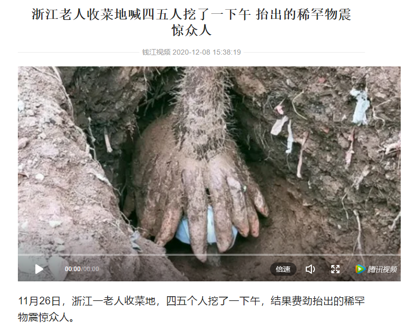 《浙江收菜老人挖了一下午,抬出的稀罕物震驚眾人》