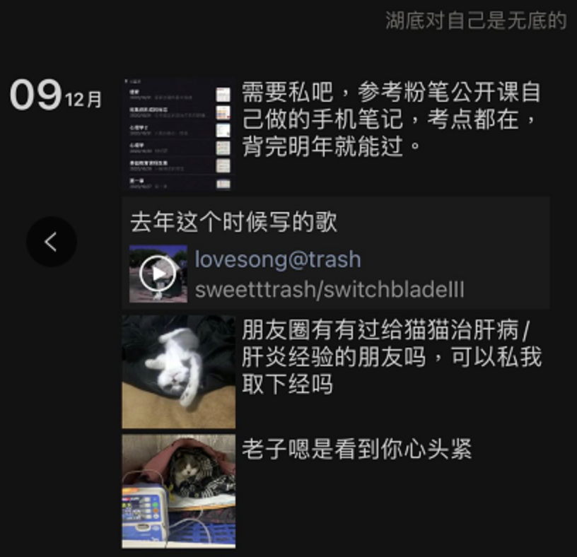 而他的朋友圈更接地氣,最新一條還整理了課堂筆記,分享給同學讓大家一起復習,好在期末考個滿意的成績。