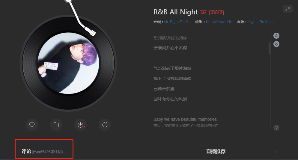 在發佈僅十分鐘,《R&B All Night》的評論數便立刻過萬,隨後便登頂網易雲音樂的新歌榜。