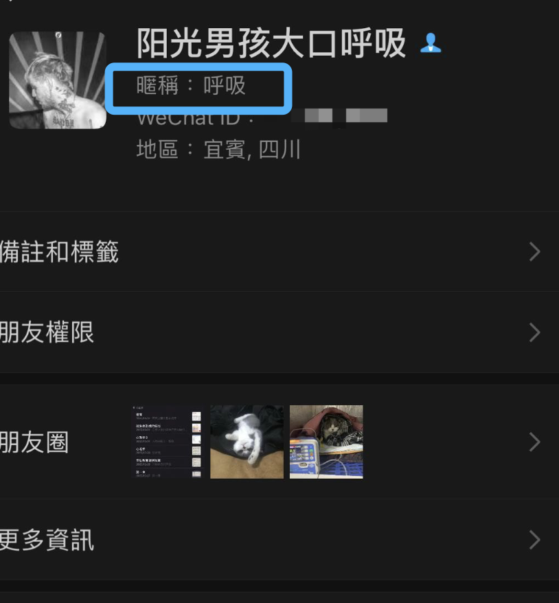 不僅如此,為了強調自己現實裏一點都不emo,別人都用藝名當ID,只有陽光小子的微信明晃晃打了兩個字:呼 吸!