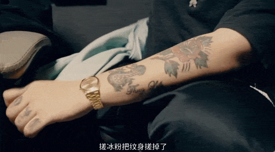 本來我以為這只是個玩笑,結果冰粉暴徒告訴我,是真的,是因為“當時紋身還在結痂,所以輕輕一搓就掉色了。”