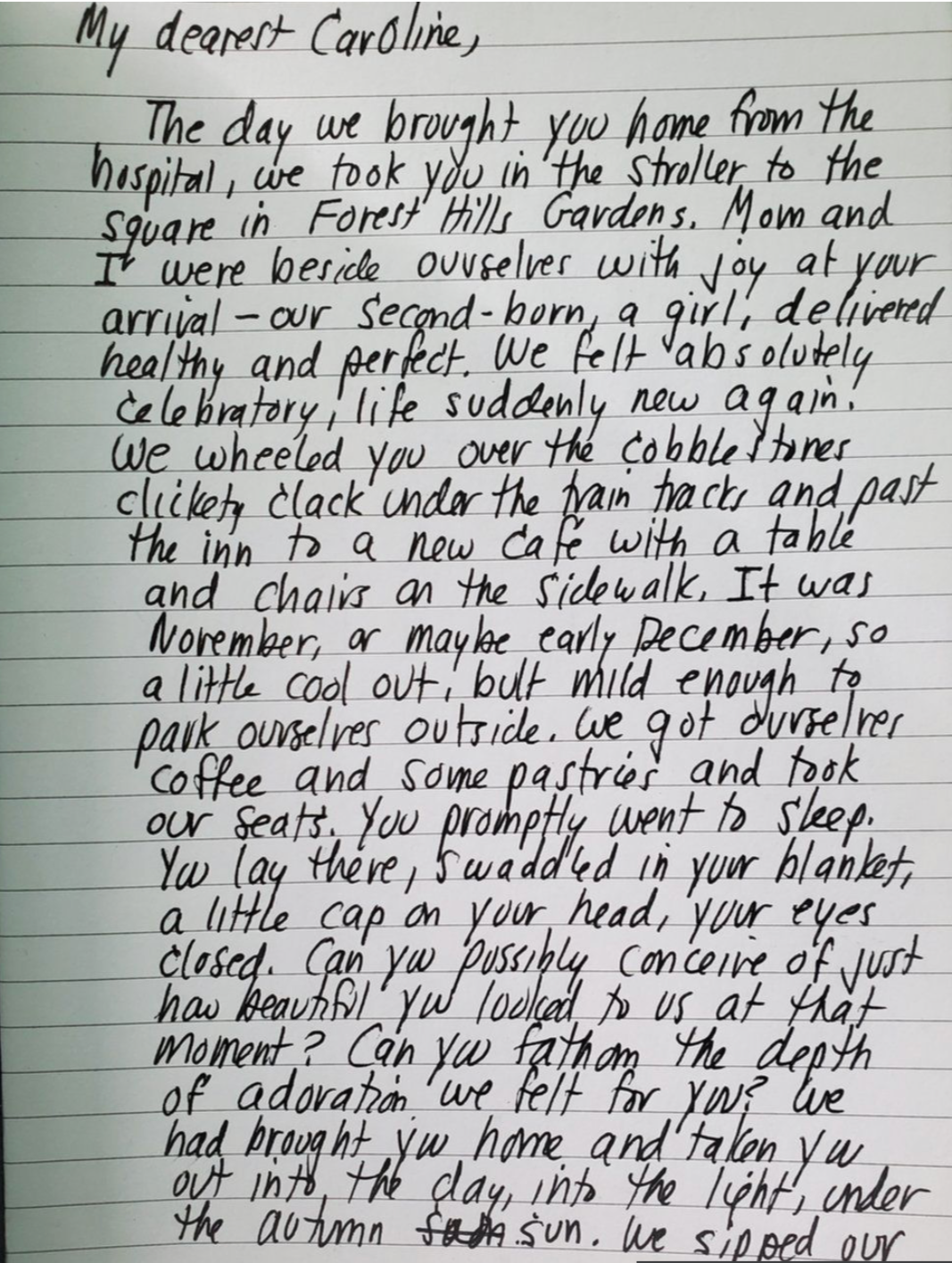 Bob寫給女兒Caroline的第一封信。
