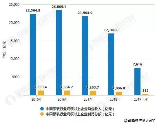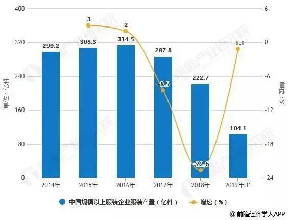 根據前瞻產業研究院的統計顯示,近5年來,我國規模以上服裝企業產量逐年走低走低(2018年除外),利潤越攤越薄,虧損也越來越多。