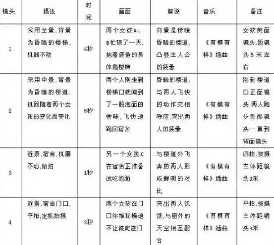 而短視頻劇本就更完善了,甚至已經接近影視劇劇本。拍攝手法、畫面、解説、音樂都非常詳盡。