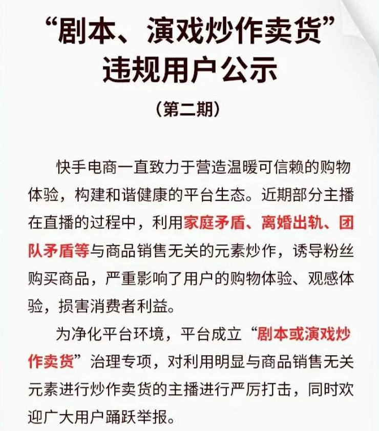 最近,快手針對“劇本、演戲炒作賣貨”現象進行專項治理,處罰了一大批抖音賬號,這裏面不乏粉絲幾百萬的大V。