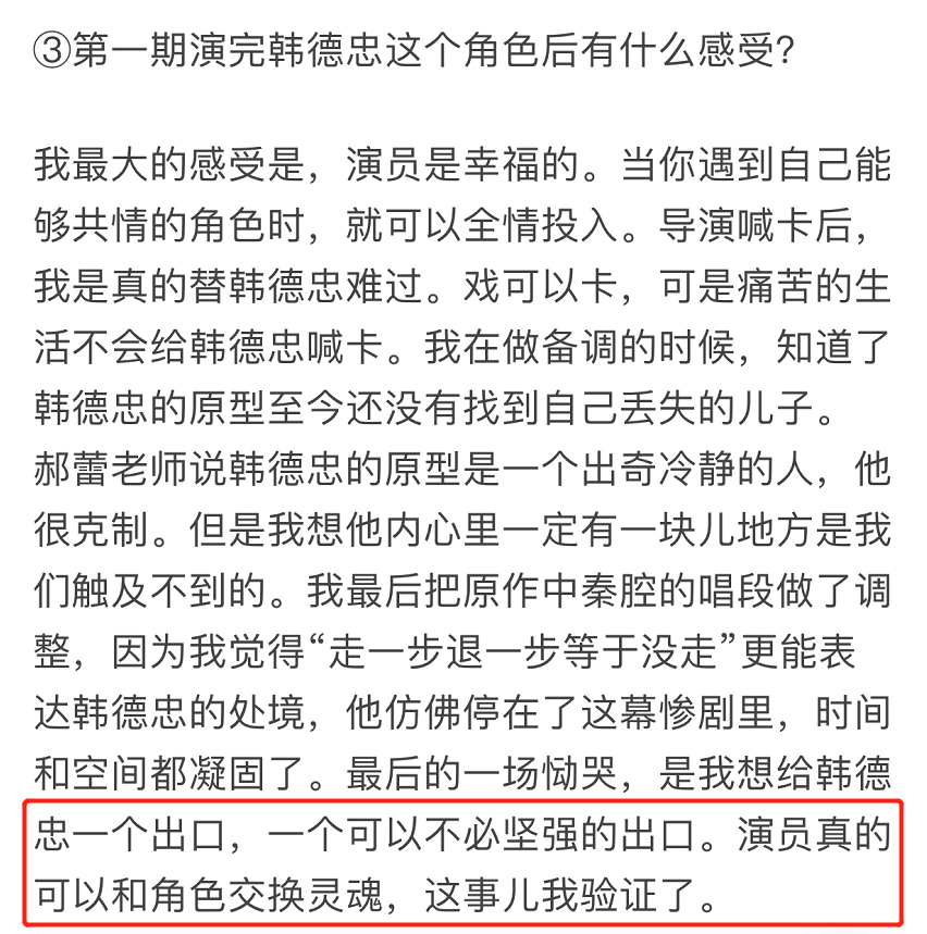 他飾演的是《親愛的》裏的韓德忠,一手辦起尋親會,出錢出力找回了許多被拐兒童,但多年下來自己的孩子卻還是杳無音信,一場別人慶祝找回愛子的喜宴,成為了終於壓垮他的最後一根稻草。