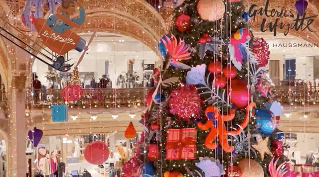 可能也是聖誕將近的原因,街上的彩燈掛起來了,巴黎老佛爺奧斯曼店的聖誕樹也開始了今年的營業,越來越多的人加入了聖誕採購的隊伍。