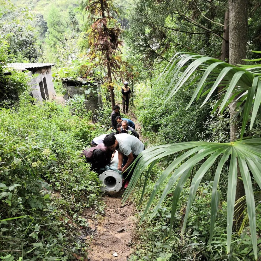 該基站建設過程中的照片存檔。即使塔可以拆卸搬運,主杆仍需要8-9人搬運上山。圖丨中國鐵塔畢節分公司