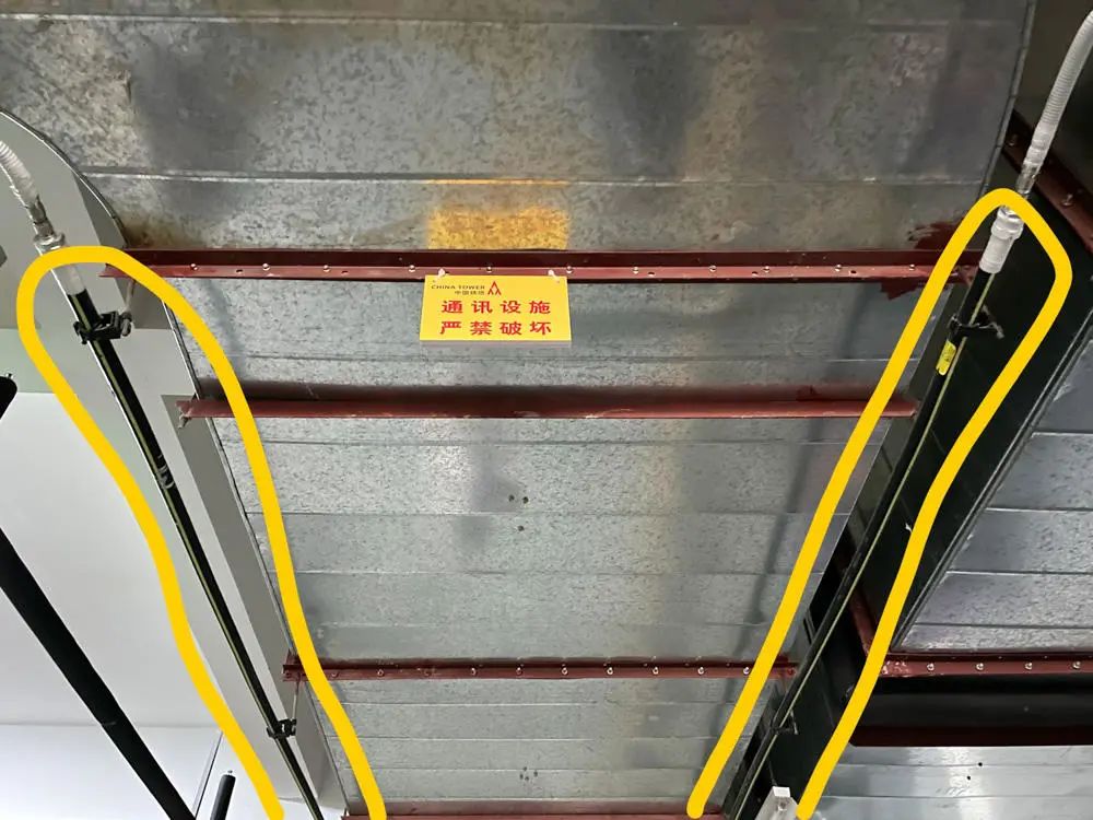 圈出的兩根黑色管線即泄露電纜。圖丨放大燈