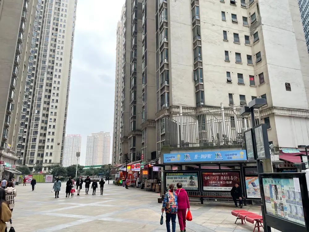 這裏的魔幻之處,一是“大”,它可能是亞洲規模最大的小區,盛名在外,在貴陽這個西南地區省會城市,簡直到了“每個貴陽人都有住在花果園的親友”的程度;二是“擠”,高樓之間的間距僅能容下窄小的步行道,兩百多座高樓,容積率達到誇張的6.8;三則是“反差”,現代化的生活,與談不上人性化的社區環境的反差,在超高密度之下,遍佈社區的各類商店、穿梭而行的外賣小哥,都在表明着居民與管理者用現代的方式,去抵消超高密度社區先天的不利影響。